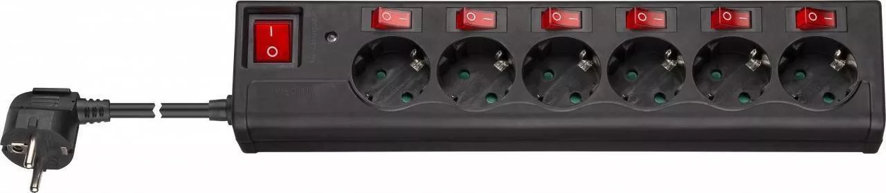 șase comutatoare luminoase pentru deconectarea separată a dispozitivelor individuale și a comutatorului principal suplimentar pentru întreaga bandă de priză