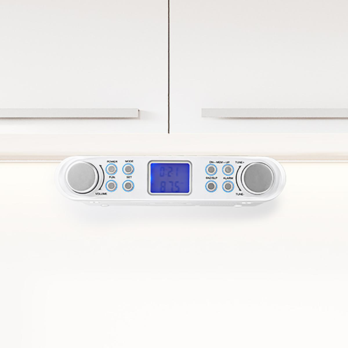 Cu toate acestea, acest radio de sub dulap este mult mai versatil. Gândiți-vă să-l montați într-un atelier sau magazie, sau în dormitorul dvs., deoarece are și un radio cu ceas cu buton de amânare, precum și un cronometru de somn pentru ca dvs. să adormiți muzica preferată.