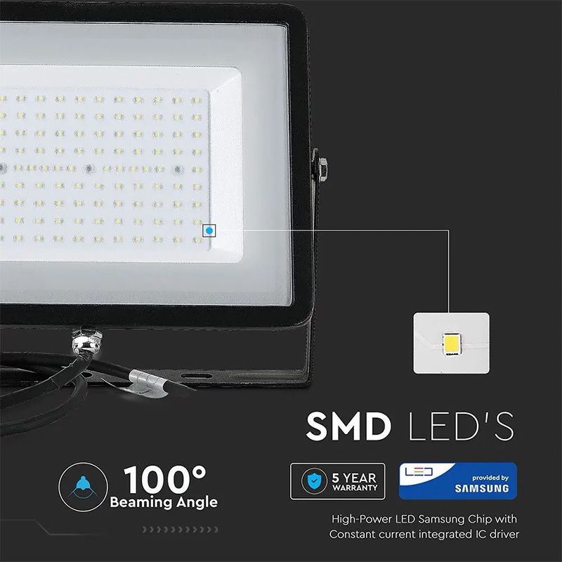 Reflector LED SMD 100W 8000lm 6400K IP65 negru cu cip SAMSUNG V-Tac SKU-414.