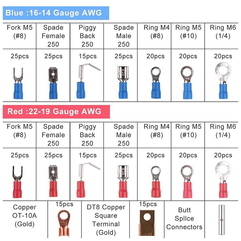 Set conectori izolați 350 bucăți plus 328 tuburi termocontractabile din poliolefină