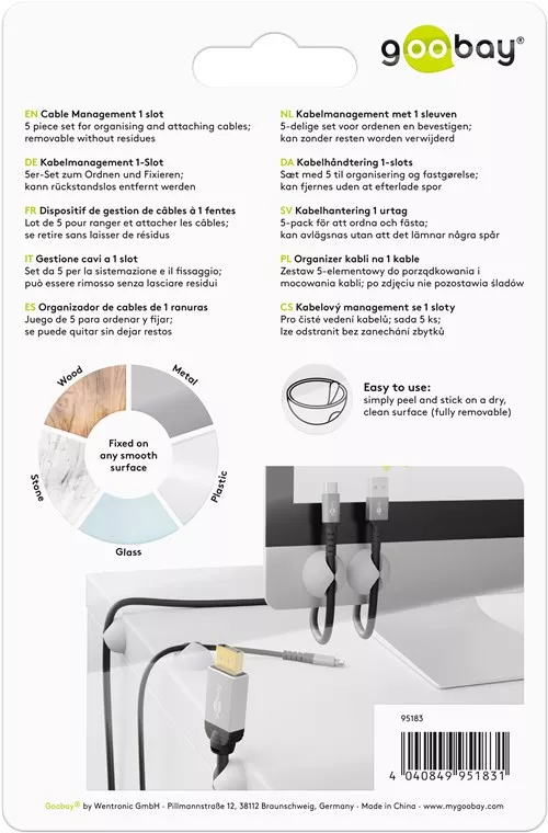 Set de 5 piese pentru organizarea și atașarea cablurilor; amovibil