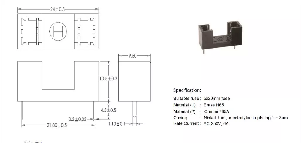 Soclu cu protectie sigurante cilindrice 5x20mm 6A 250V 20mohm PROFFUSE ZH32.