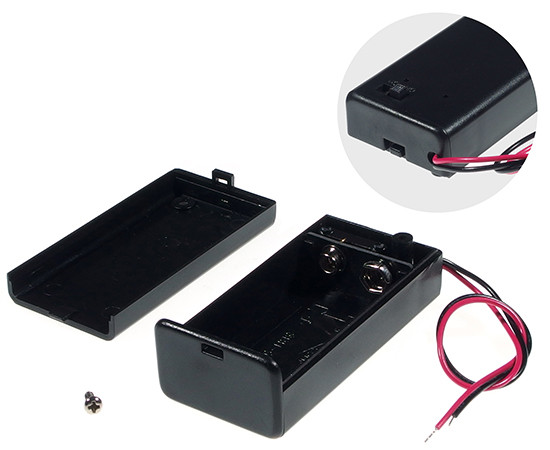 Suport baterie 1x 9V 6F22 6LR61 cu fire 150mm cu comutator neagra COMF SBH-9VAS.