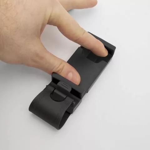 Culoare neagra. Dimensiune de cuprindere reglabila, maxim 80 mm. Ideal pentru telefoane de 12 cm