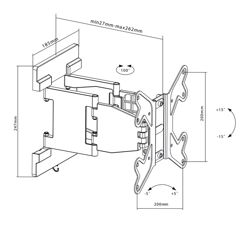 distanța de perete reglabilă între 27 mm – 262 mm,