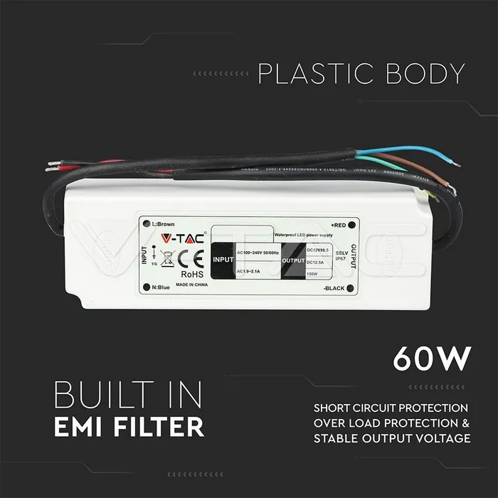 Sursa alimentare slim IP67 12V 5A 60W V-TAC