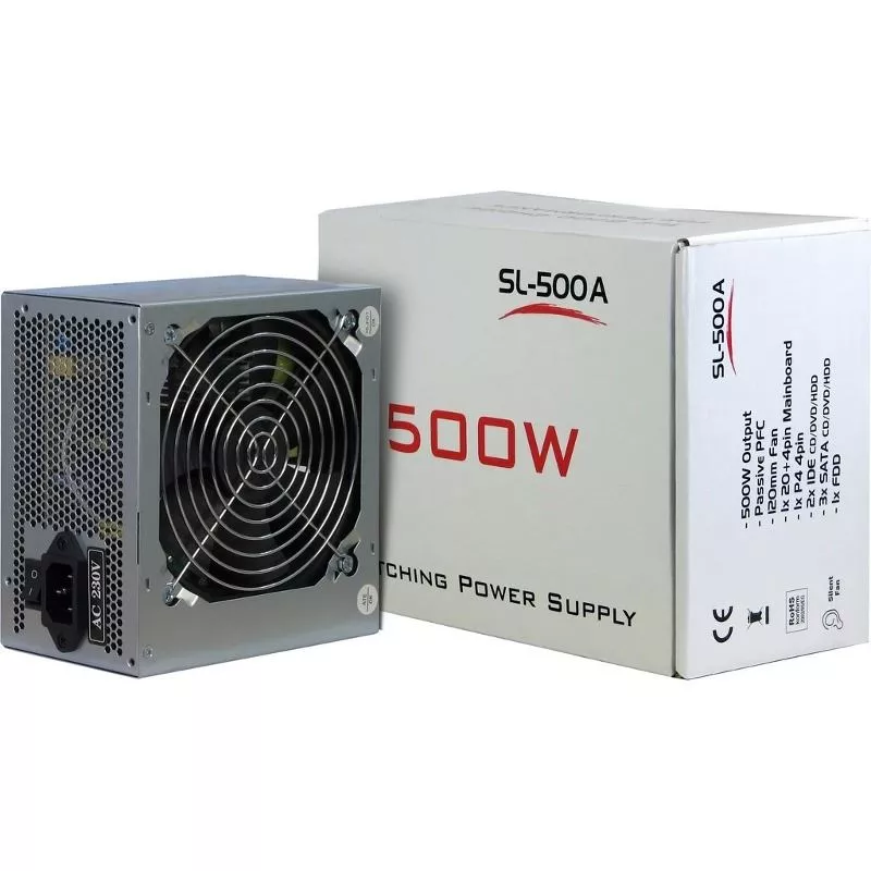 Sursa Inter-Tech SL-500 500W PSU, single rail (30A), ventilator silentios de 120mm cu control termic automat, 3x SATA, 2x Molex, 1x Floppy, SCP/OCP/OVP, Passive PFC