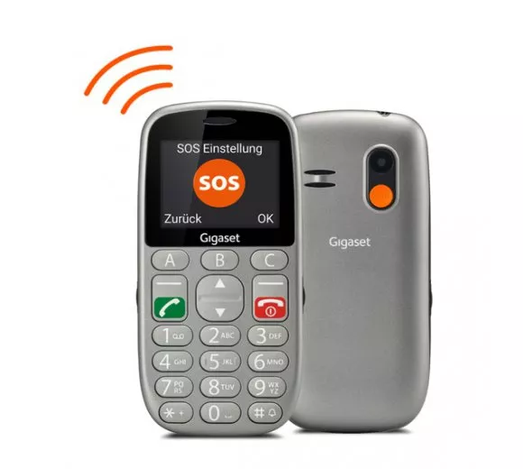 Telefon mobil Gigaset GL390 cu butoane mari argintiu.